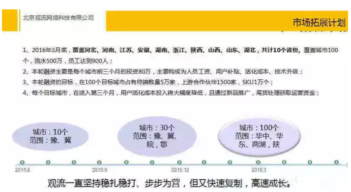 “目前是旁邊快速擴張的重要節點,到2016年一季度末,旁邊將覆蓋河北、河南、江蘇、安徽等共計10個華中、華東省份,覆蓋城市100個,100個目標城市占有終端數量5萬家,上游合作企業1500家,注冊用戶數將達到800萬以上”,北京觀流網絡科技有限公司CEO許英杰對記者坦言。