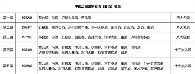 1989年,最后一屆全國名酒評比會評出了十七大名酒,不過相對來說1963年第二屆選出來的八大名酒在業內傳承更廣,也就是業內俗稱的“老八大名酒”。所謂老八大名酒分別是:五糧液、古井貢、瀘州老窖、全興大曲、茅臺酒、西鳳酒、汾酒、董酒。