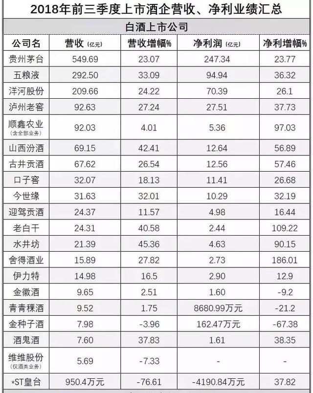 在八大名酒中,我們發現茅臺、五糧液前三季度營業總收入分別突破550億、293億,瀘州老窖前三季度接近100億,山西汾酒也超過69億,在白酒品牌營收排名中均位居前列。