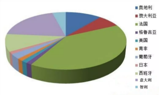 不合格產(chǎn)品主要來自奧地利、澳大利亞、法國、格魯吉亞、美國、南非、葡萄牙、日本、西班牙、意大利、智利等11個國家或地區(qū),其中來自法國的最多,有29批次,其次是意大利有14批次。