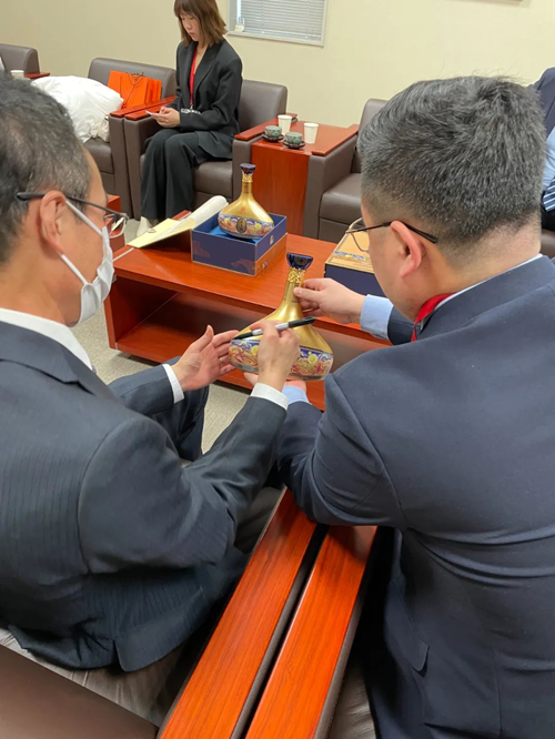 在交談過程中,中國白酒文化歷史悠久、博大精深、源遠(yuǎn)流長,給大使留下了深刻的印象。小泉勉大使對“白水杜康十三朝帝國酒”具有中國“一帶一路”傳統(tǒng)美學(xué)的設(shè)計(jì)贊不絕口,表示自己會好好收藏,同時也會帶回日本和同伴分享。