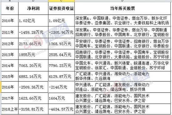 2010-2017年間,蘭州黃河的扣非凈利潤(rùn)分別為1572.70萬(wàn)、-96.99萬(wàn)、1170.51萬(wàn)、1090.45萬(wàn)、2077.69萬(wàn)、1870.26萬(wàn)、-1055.90萬(wàn)和441.82萬(wàn),合計(jì)金額7070.54萬(wàn)元。以此計(jì)算,蘭州黃河這8年時(shí)間里,其炒股收益是經(jīng)營(yíng)啤酒等業(yè)務(wù)收入的3.5倍。