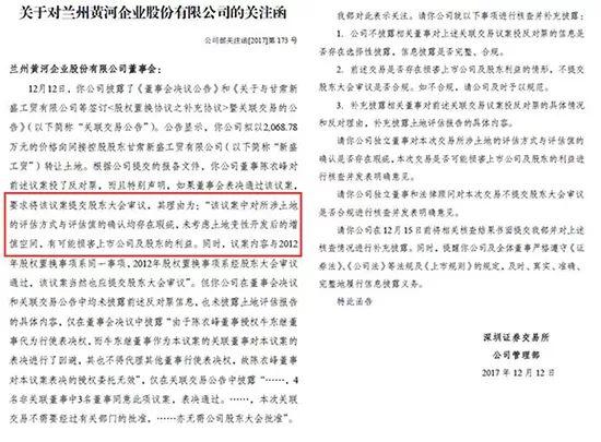 董事質(zhì)疑蘭州黃河賤賣(mài)土地 深交所發(fā)函關(guān)注(資料來(lái)源:深交所)