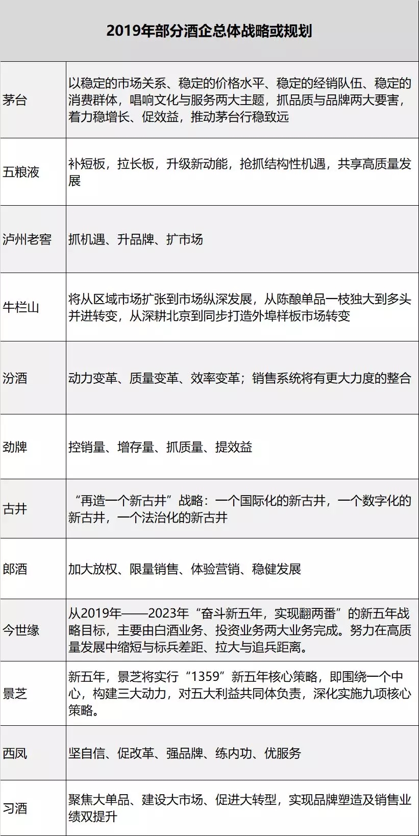 2019年是茅臺“跳起來摘桃子”的破局之年;2019年是五糧液的開篇之年和關鍵之年;2019年是瀘州老窖的搏命之年……隨著各家酒企2019年新政的出爐,我們已能初窺2019年的面貌。