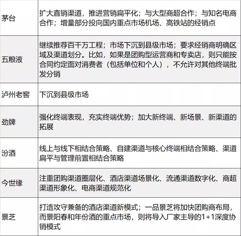 茅臺在2019年的全面開花,對消費者來說是利好消息;五糧液的“百千萬工程”會繼續(xù),也就是說對終端的搶奪不會停止;勁牌也對終端寄予厚望;而且五糧液、瀘州老窖都會進一步下沉到縣級市場;此外,繼續(xù)深化改革的汾酒也要在直銷和扁平化發(fā)力;牛欄山、古井2019年會進一步在全國攻城略地,渠道的選擇和拓展不可回避。