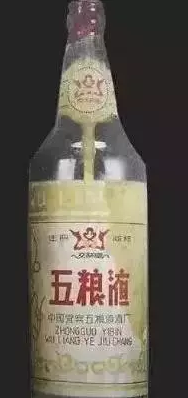 這個時期五糧液瓶身開始出現“中國名酒”字樣的頸標,酒標中“五糧液”字體發生改變,最值得提醒的是瓶身上出現了條形碼背標。