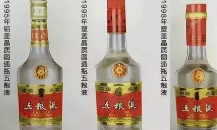 1993年晶質圓通瓶五糧液誕生。1995年圓通瓶五糧液頸標取消,同年推出“三防蓋”以及晶質多棱瓶。1998年“三防蓋”首次應用于晶質圓通瓶五糧液,卻也是此瓶型的終結年。