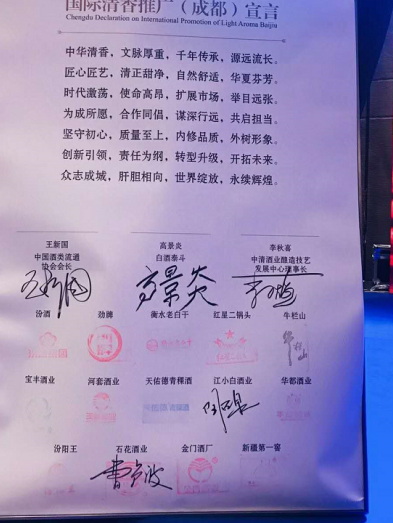 共舉清香天下大旗 汾酒、江小白等簽署“國際清香推廣宣言”