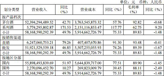 貴州茅臺2017年酒類毛利率跌破90%。年報數據顯示,2017年貴州茅臺酒類毛利率為89.83%,同比下降1.48%。