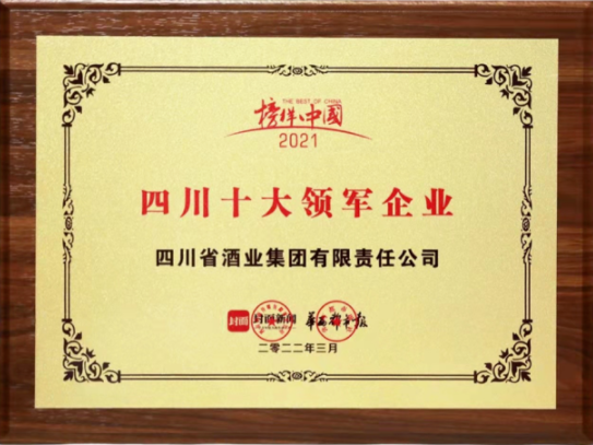 封面新聞記者從“四川十大經濟影響力人物”頒獎會上獲悉,川酒集團榮獲榜樣中國2021“四川十大領軍企業”稱號。