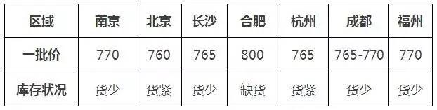 上海一批價1280元,少量貨源,部分經銷商斷貨,多數專賣店、中轉庫已經沒貨可提。