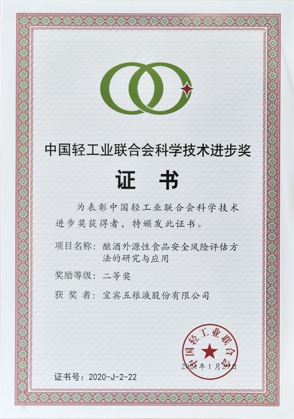 其中,《單糧與多糧濃香型白酒固態發酵酒醅微生物代謝結構和代謝特征解析》項目系統解析了五糧液發酵相比于單糧發酵的優勢,為五糧液傳統工藝的精髓作出了科學注解,獲2019年中國酒業協會科技進步二等獎;《釀酒外源性食品安全風險評估方法的研究與應用》項目建立了系統的食品安全評估體系及關鍵控制技術,獲2020年中國輕工聯合會科技進步二等獎;《五糧液包包曲質量提升技術研究與應用》優化了曲坯成型工藝,顯著提升了大曲質量,獲2021年中國食品工業協會科技進步一等獎;《回沙窖產量提升技術研究》項目首創回沙窖紅糟發酵動力強化技術,獲2021年中國輕工業聯合會科技進步三等獎……