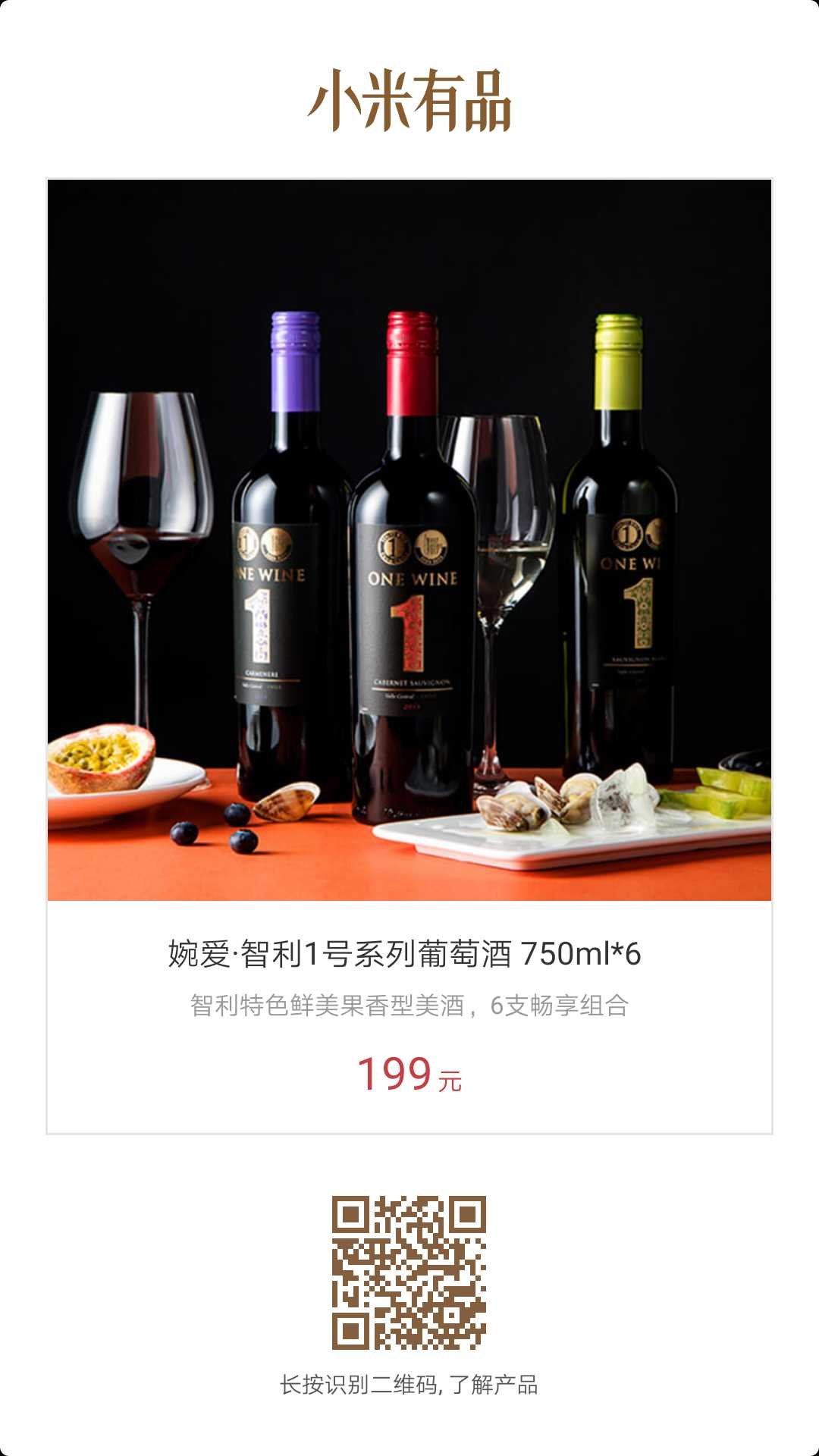 4月26日,一款名為“婉愛·智利1號”的葡萄酒上線小米有品,備受行業關注。據悉,智利1號是爆款締造者、全酒類教育及零售商北京逸香引進的高性價比智利原瓶原裝進口葡萄酒,6支裝零售價為199元。智利1號系列由1號卡曼納、1號赤霞珠、1號長相思三款產品組成,一次性向葡萄酒愛好者呈現智利3大代表性葡萄品種,也向國內市場展示了新世界葡萄酒的獨特魅力。