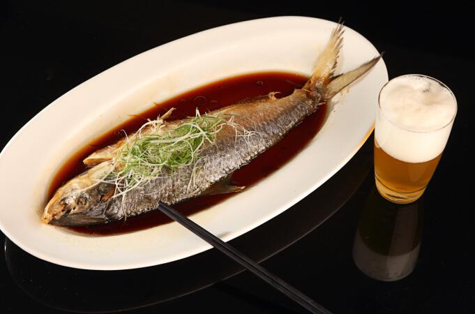 特別注重季節清新爽口的時令菜蔬河鮮海味是上海菜的一大特色,清淡不失鮮美的清蒸鰣魚就是不二之選。Frank大廚提出:“白啤配白肉,時鮮配生啤”是這類菜肴的最佳搭配形式。要知道,白啤一般以生啤酒的形式飲用,其特點是酒精含量少、酒體濃厚色為白,口感滑爽輕盈,甜酸中微帶一絲苦味。有如此美酒,魚肉的鮮嫩即可呼之欲出,回味無窮。