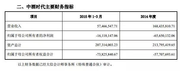 昨日晚間,青青稞酒發(fā)布收購中酒時代酒業(yè)(北京)有限公司(簡稱“中酒網(wǎng))的交易進(jìn)展公告,并披露了中酒網(wǎng)主要財務(wù)指標(biāo),其中今年1-3月中酒網(wǎng)實(shí)現(xiàn)營業(yè)收入5746.65萬元,實(shí)現(xiàn)凈利潤-1611.81萬元,2014年實(shí)現(xiàn)營業(yè)收入1.68億元,實(shí)現(xiàn)凈利潤-6565.01萬元。