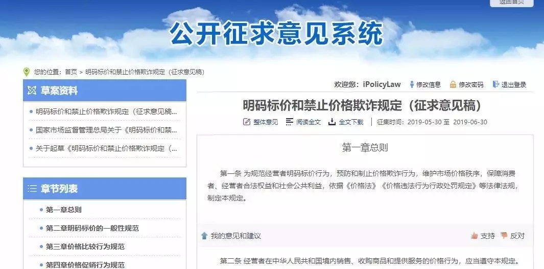 5月31日,國家市場監(jiān)督管理總局發(fā)布了關(guān)于《明碼標價和禁止價格欺詐規(guī)定(征求意見稿)》公開征求意見的通知。并將征集意見稿向社會公布,征集意見。