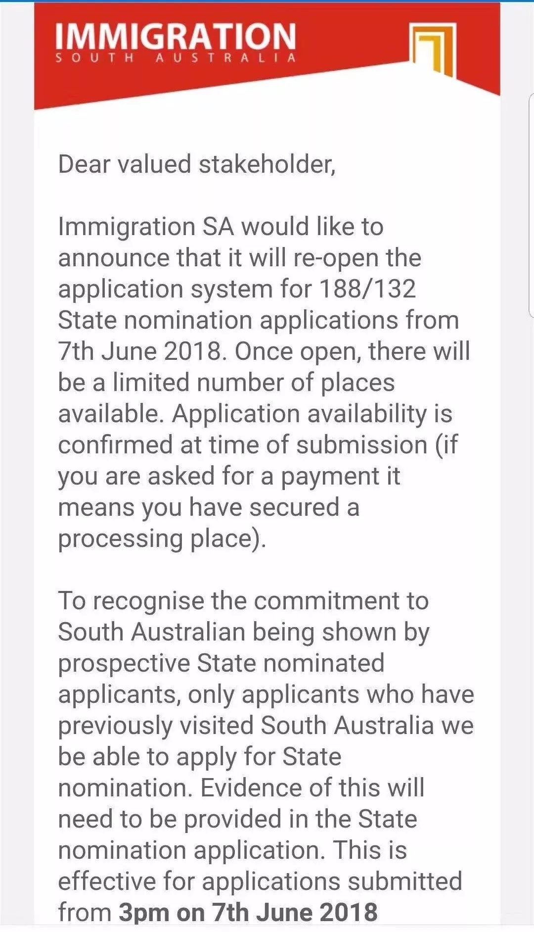 近日WBO收到消息,澳大利亞南澳州政府修改了移民政策,規定從2018年7月1日以后提交132移民項目簽證州提名的申請人,如果年齡在55歲以下需要滿足更高的要求才能拿到南澳州政府提名,即至少出口價值60萬澳元的南澳州產品或服務。前提是出口的產品大部分不能是酒。如果出口的產品僅限于南澳州的酒的話,那么出口總額將不能低于100萬澳元。