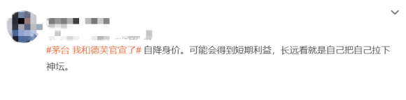 不過,也有網(wǎng)友表現(xiàn)出了某種擔(dān)憂。“(茅臺)這樣搞會不會把自己的身價搞掉了?”、“(茅臺)自降身價,可能會得到短期利益,長遠(yuǎn)看就是自己把自己拉下神壇。”