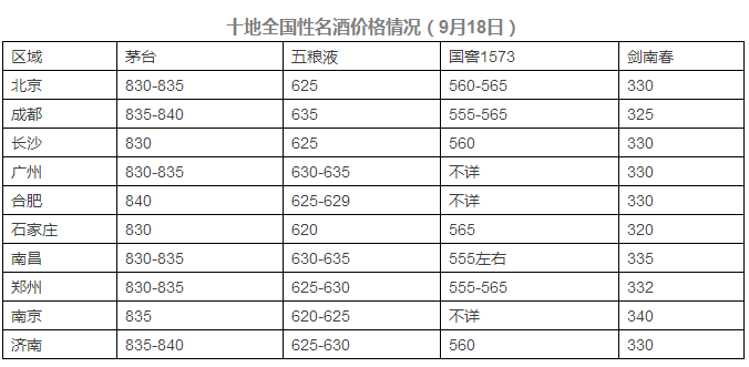 關(guān)于全國性名酒價(jià)格