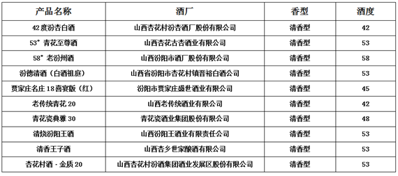 附:2020年首屆“杏花村”杯呂梁烈性酒產(chǎn)區(qū)清香型白酒新銳獎獲獎產(chǎn)品名單(按產(chǎn)品名稱拼音排序)
