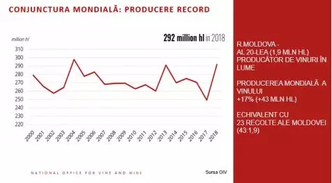 其實(shí),不僅是摩爾多瓦,全球都在經(jīng)歷葡萄酒生產(chǎn)過剩。據(jù)OIV的數(shù)據(jù)顯示,2018年全球葡萄產(chǎn)量也達(dá)到了創(chuàng)紀(jì)錄的水平,同比增長17%,增長量為430萬千升,該增長量相當(dāng)于摩爾多瓦共和國23年的葡萄收獲量。