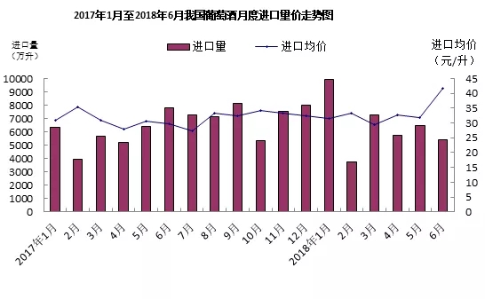 根據海關總署發布的數據顯示,今年上半年我國進口葡萄酒3.9億升,比去年同期增加9.3%;價值127.1億元人民幣,增長17.6%;進口平均價格為每升33元,上漲7.6%。該數據與2017年的數據非常類似,葡萄酒的進口金額均跑贏了進口量。而在今年6月進口均價創2013年12月以來的55個月新高,同樣能看出消費升級的態勢。
