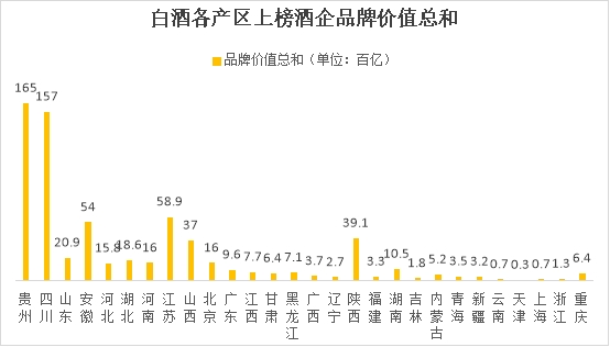 從酒企品牌價(jià)值來看,貴州、四川、安徽、山西、陜西表現(xiàn)突出。對比這些地區(qū)的酒企數(shù)量,貴州和四川數(shù)量多,酒企品牌價(jià)值也高!相比之下,山西和陜西酒企數(shù)量較少,但品牌價(jià)值高,這主要?dú)w功于山西汾酒、陜西西鳳酒在各自香型中的龍頭地位。由此可見,占據(jù)某種香型的頭部位置的酒企,可以明顯拉動歸屬地的品牌價(jià)值,營造出優(yōu)質(zhì)產(chǎn)區(qū)效應(yīng)。因此,白酒企業(yè)應(yīng)當(dāng)進(jìn)一步挖掘自身特色,打造專屬香型。
