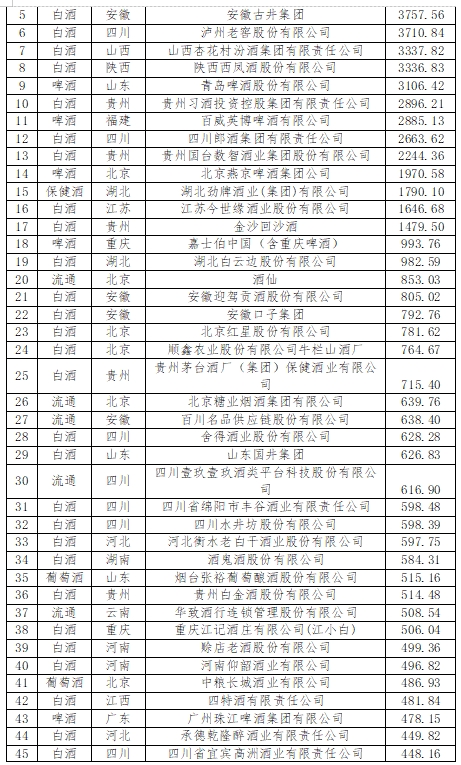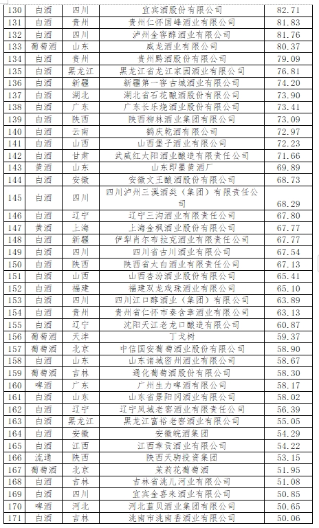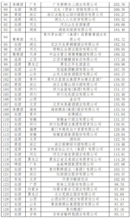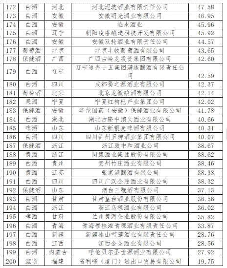 華樽杯第十六屆中國酒類品牌價(jià)值200名單如下: