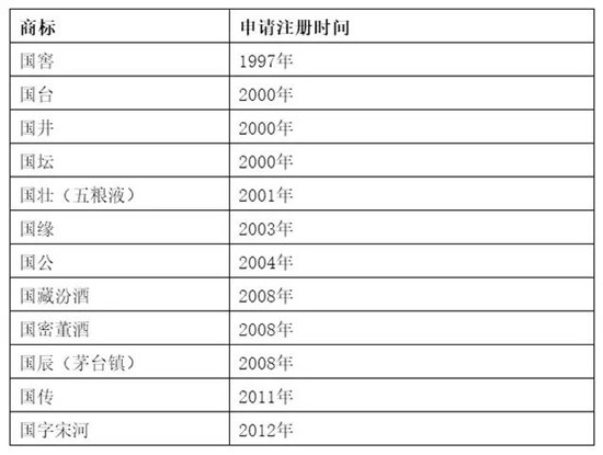 茅臺申請“國酒茅臺”商標最早要追溯到2001年,當年9月,茅臺就初次向國家工商總局商標局提交了“國酒茅臺”商標及圖注冊的申請,但并未獲得通過。此后的2006年、2007年、2010年,茅臺又多次提交過“國酒茅臺”的商標申請,除最后一次商標申請通過初審外,此前的商標申請均已失效。2012年7月,國家工商總局商標局官網發布的初審公告顯示,茅臺申請的“國酒茅臺”商標通過了商標局初步審查。然而,消息披露后,隨即在白酒行業引發抵制狂潮。