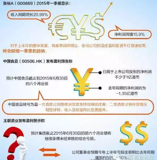 而長城葡萄酒也已基本確定上半年扭虧為盈。7月15日,中國食品(00506.HK)發(fā)布正面盈利預(yù)告稱,預(yù)計(jì)中國食品截止到2015年6月30日的六個(gè)月業(yè)績錄得歸屬于上市公司股東的凈利潤不少于1億港幣,去年同期的凈利潤則為-1.35億港幣。中國食品轉(zhuǎn)虧為盈原因一方面是公司整體運(yùn)營效率持續(xù)明顯改善;二是酒類業(yè)務(wù)經(jīng)營情況明顯好轉(zhuǎn),收入及銷量同比顯著提升。
