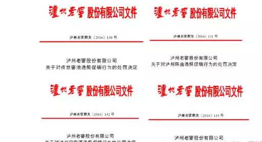 時(shí)隔僅僅6天,酒說(shuō)記者在再次獲悉:瀘州老窖股份公司有限公司連發(fā)四道文件,對(duì)傳世窖池、瀘州陳曲、瀘州御酒、瀘州迎賓酒的違規(guī)促銷行為的處罰決定,絕對(duì)一手哈!