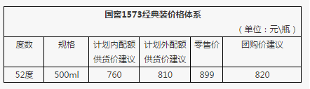 通知中,52度國窖1573經典裝的最新價格體系如下: