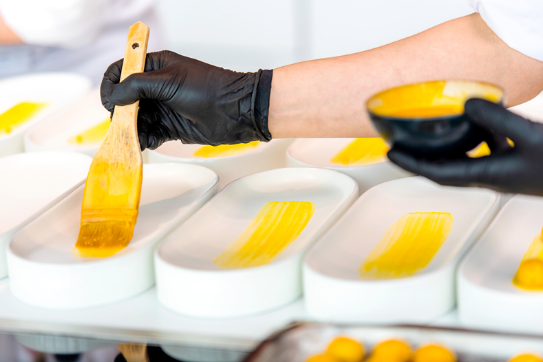 上海柏悅酒店主廚用明黃色醬料制作菜品