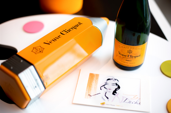 午宴現(xiàn)場,凱歌香檳Colorama幻彩系列醒目耀眼,上海柏悅酒店的主廚專門為本次活動(dòng)定制了幻彩菜單,通過對色彩的靈活運(yùn)用將凱歌香檳的色彩創(chuàng)意表現(xiàn)得淋漓盡致。席間菜名均以凱歌香檳標(biāo)志性色號(hào)命名,主廚特別準(zhǔn)備彩色醬料搭配,來賓們可用醬料在擺盤中創(chuàng)意作畫,為菜品賦予全新的色彩意義。除此之外,凱歌香檳還特別邀請畫師,現(xiàn)場為每一位嘉賓勾勒肖像畫,留下專屬于凱歌風(fēng)格的創(chuàng)意畫像,在色彩線條中畫出彩色夏天。