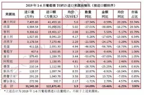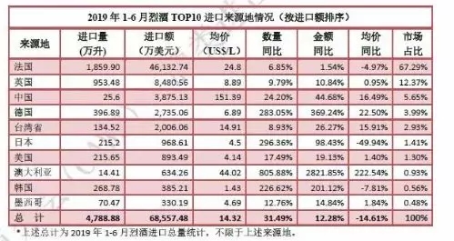 2019上半年進口烈酒增幅明顯 智利躍居葡萄酒進口量第一位