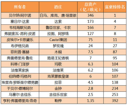 1、法國葡萄酒行業富豪排行榜