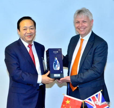 省貿(mào)促會會長陳河才將青花汾酒贈予英中貿(mào)易協(xié)會首席執(zhí)行官馬修勞斯