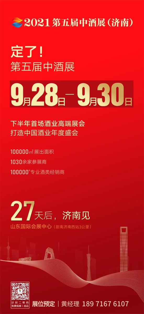 9月1日,中酒展組委會官方宣布,2021第五屆中酒展將于9月28日在濟南正式開幕,展期為9月28日—9月30日,為期3天。