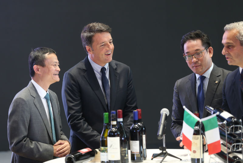 今年4月11日,馬云在參加意大利酒展期間,與倫齊共同宣布將在今年9月9日開啟首屆天貓全球酒水節,兩人當時還喊話在座的意大利紅酒生產商,要在阿里巴巴這個全球最大的電商平臺上一起改變世界。