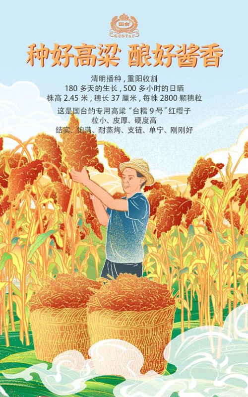 種植面積之廣,為國臺生產帶來堅實保障。今年國臺紅纓子糯高粱種植面積總量達到10萬畝,包括仁懷產區以及與仁懷相鄰的周邊地區(海拔、氣候、土壤等自然條件接近的地塊),比如貴州省內遵義市桐梓縣、紅花崗區、鳳岡縣、綏陽縣、安順市,黔西南州安龍縣等地,專門建設了國臺紅纓子糯高粱種植基地。基地規模之大,不僅為企業生產提供了原料保障,也為助推鄉村振興和全民富余做出了貢獻。