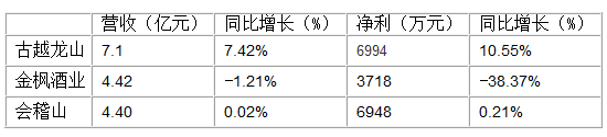 在這樣形勢(shì)下,2015年上半年黃酒上市企業(yè)業(yè)績(jī)情況差強(qiáng)人意。八月下旬,三家上市黃酒企業(yè)紛紛披露了2015年半年報(bào),其中,古越龍山上半年?duì)I收凈利雙增,會(huì)稽山營(yíng)收凈利微增,但黃酒業(yè)務(wù)營(yíng)收出現(xiàn)小幅下滑;而金楓酒業(yè)則營(yíng)收微降,凈利降幅較大,近4成。