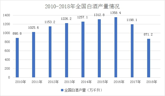 隨便翻閱各種白酒行業(yè)數(shù)據(jù),不難看出:雖然白酒的銷(xiāo)售規(guī)模仍十分巨大,但白酒的總產(chǎn)量從17年開(kāi)始卻是不斷下降。2018年的產(chǎn)量更是低于2010年,創(chuàng)近年來(lái)最低值,側(cè)面反映了白酒需求的減少。