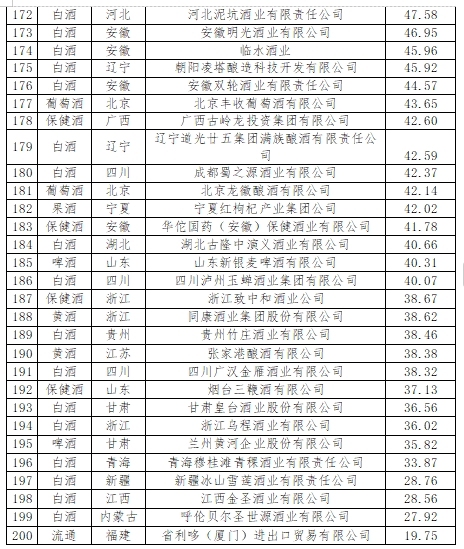 華樽杯第十六屆中國(guó)酒類品牌價(jià)值200名單如下: