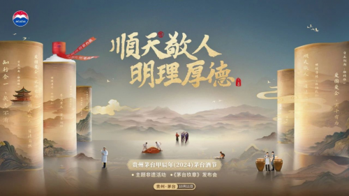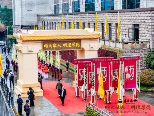 “金風浩蕩,天遠氣清,茫茫寰宇,旨酒其醇……”在慷慨激昂的主持詞中,“順天敬人 明理厚德”貴州茅臺甲辰年(2024)茅臺酒節,于10月11日在茅臺本部正式開啟。這不僅是茅臺順應天時新一年度制酒工作的開啟,也是感恩先師、傳承工藝,并頌揚非遺文化及愛國敬業精神的盛典。