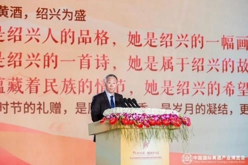 中國酒業協會理事長宋書玉以《紹興是一個希望》為題,為開幕式作了充滿詩意的致辭。他表示,紹興作為黃酒之都,立冬冬釀傳承至今,這是造物主對紹興的格外眷顧,是紹興物華天寶的自然芬芳。在他看來,千年黃酒,紹興為盛。黃酒,是紹興人的品格,是紹興的一幅畫,是紹興的一首詩,是屬于紹興的故事,蘊藏著民族的情節,也是紹興的希望。黃酒,是時節的禮贈,是歷史的余香,是歲月的凝結,更是一座城市的微醺。每一杯中都蘊含著一段歷史、一種風情、一個故事,跨越時空,傳承至今。