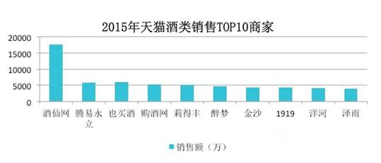 明細顯示,今年天貓酒類銷售TOP10商家分別是(按銷售額遞減):酒仙網官方旗艦店,騰易永立酒類專營店,也買酒官方旗艦店,購酒網官方旗艦店,莉得豐酒類專營店,醉夢酒類專營店,金沙酒類旗艦店,壹玖壹玖官方旗艦店,洋河官方旗艦店,澤雨食品專營店。
