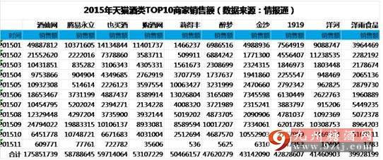 而近日通過第三方數據平臺“情報通”爆出來的天貓2015年最新的酒類銷售TOP10商家明細,更是證明了這一點。