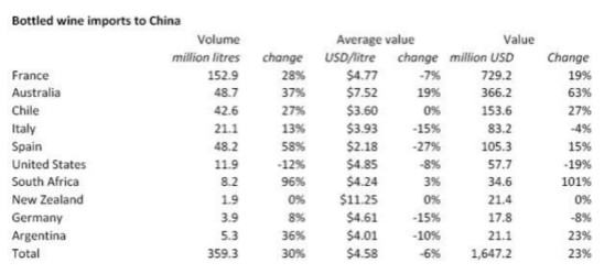 截止至2015年的前8個月,澳大利亞瓶裝葡萄酒在中國仍穩居瓶裝進口葡萄酒市場的第二把交椅。中國進口的澳大利亞瓶裝葡萄酒總量達到了4870萬升,總額高達3億6600萬美元,其中平均價格更高達7.52美元/升,在進口排名前五的國家中位列第一。