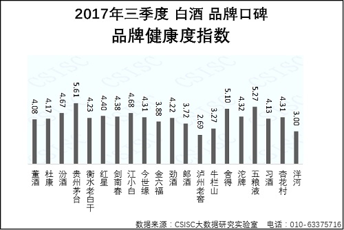 今日,中國(guó)統(tǒng)計(jì)信息服務(wù)中心、中國(guó)質(zhì)量新聞網(wǎng)聯(lián)合發(fā)布《2017三季度中國(guó)白酒品牌口碑研究報(bào)告》(數(shù)據(jù)查詢:http://koubei.12340.net.cn/),白酒口碑總榜出爐,五糧液以絕對(duì)優(yōu)勢(shì)占據(jù)榜首,茅臺(tái)、洋河分別位列二三且差距甚微;瀘州老窖、汾酒、劍南春、紅星等品牌口碑較為穩(wěn)定,近兩季均位列榜單前十;江小白、今世緣本季新入十強(qiáng)。