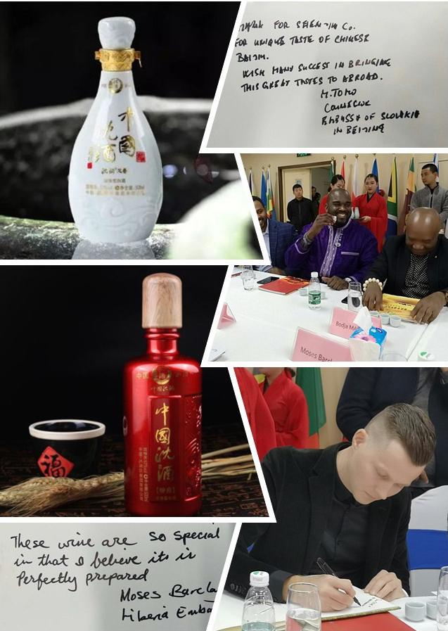 “Taste good”、“High quality”、“Look beautiful”……這是白俄羅斯、喀麥隆、加納、拉脫維亞、利比里亞、萊索托、斯洛伐克、斯里蘭卡、意大利、澳大利亞、克羅地亞、墨西哥等國家駐華使節在品鑒完沈酒之后,發出的由衷贊嘆。